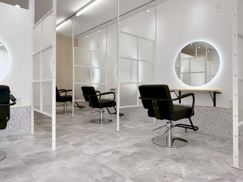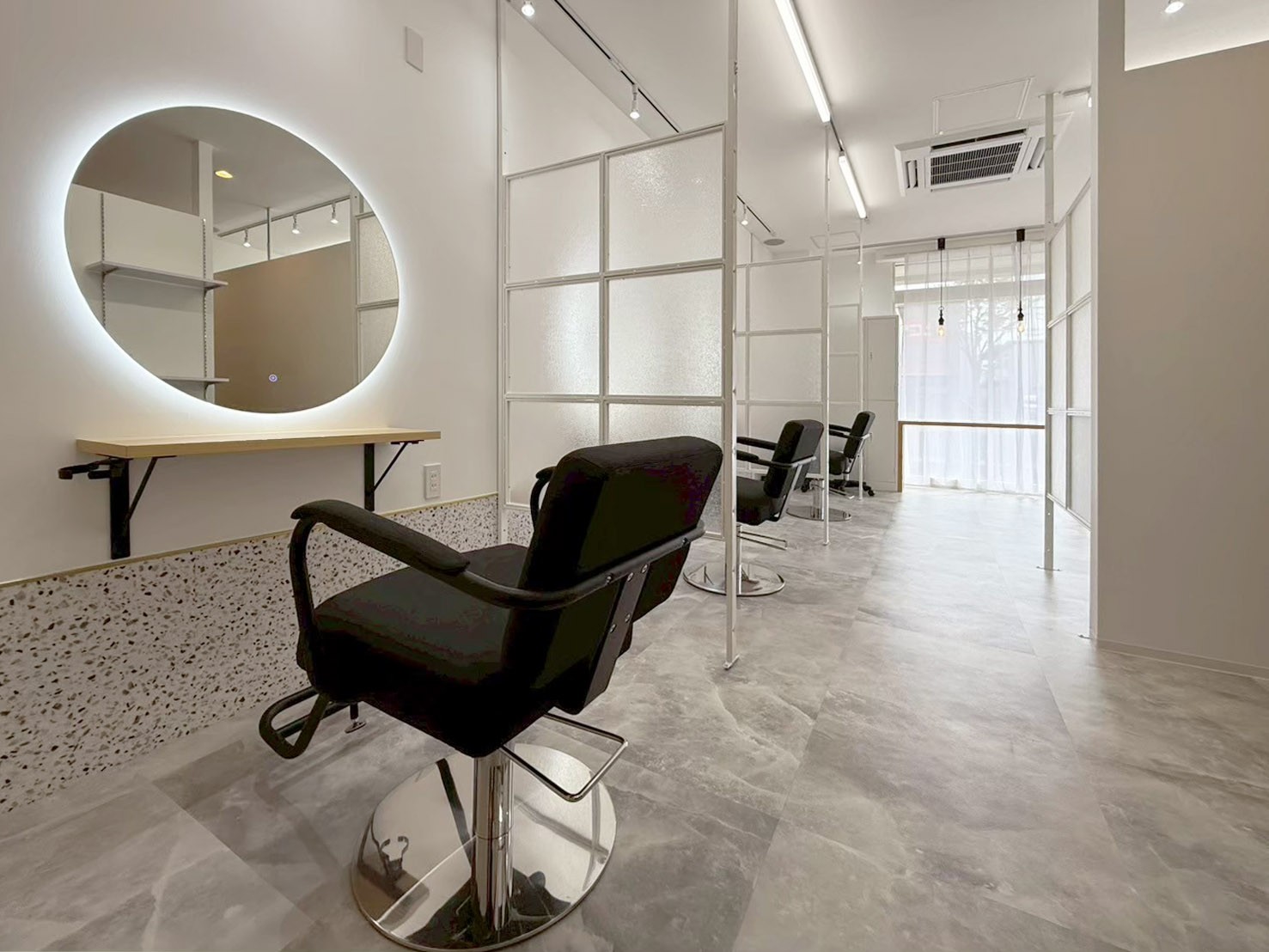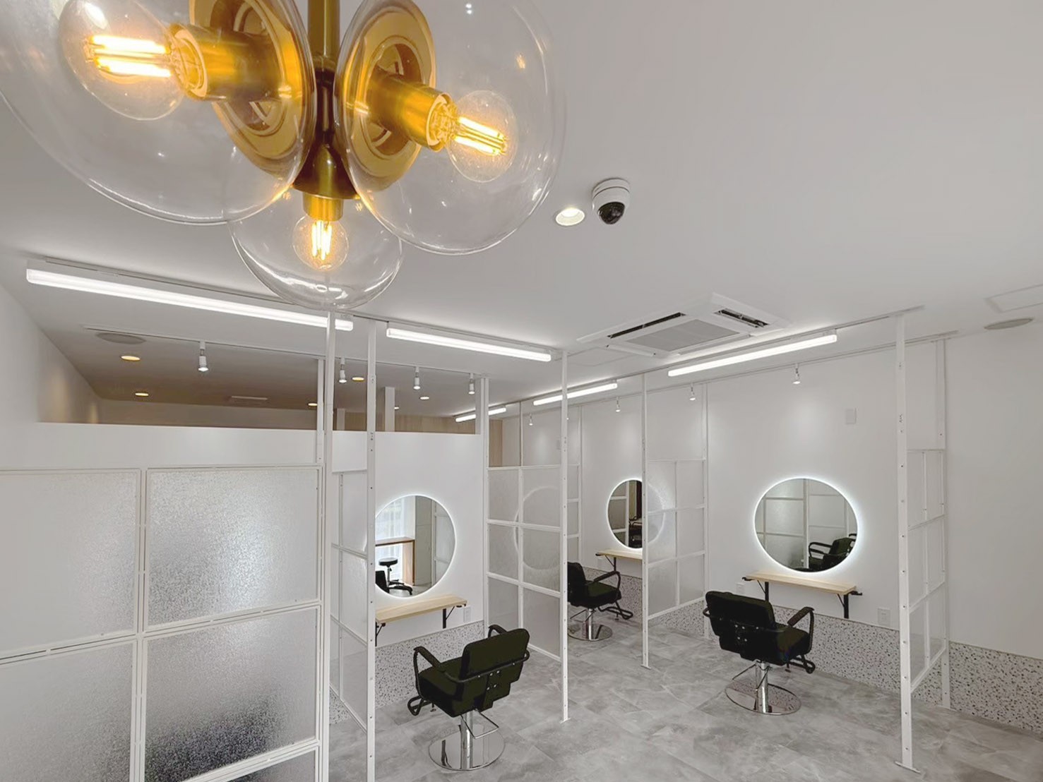 セット面は5席、コールド席を1席配置。パーテーションで区切って半個室にすることで、プライベート感のある施術が可能に。サロンを訪れるお客様の安心にも一役買ってくれます。