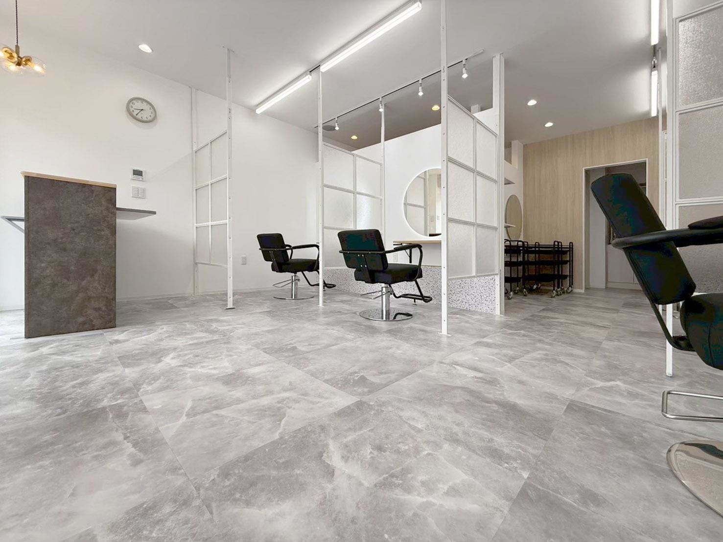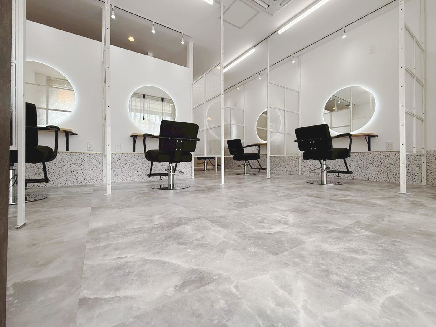 白とグレーなど、重くない色をふんだんに使用した店内は、無機質で清潔な雰囲気をただよわせながらも、お客様がリラックスできるよう、ほんのりと優しさも香る内装に仕上げました。