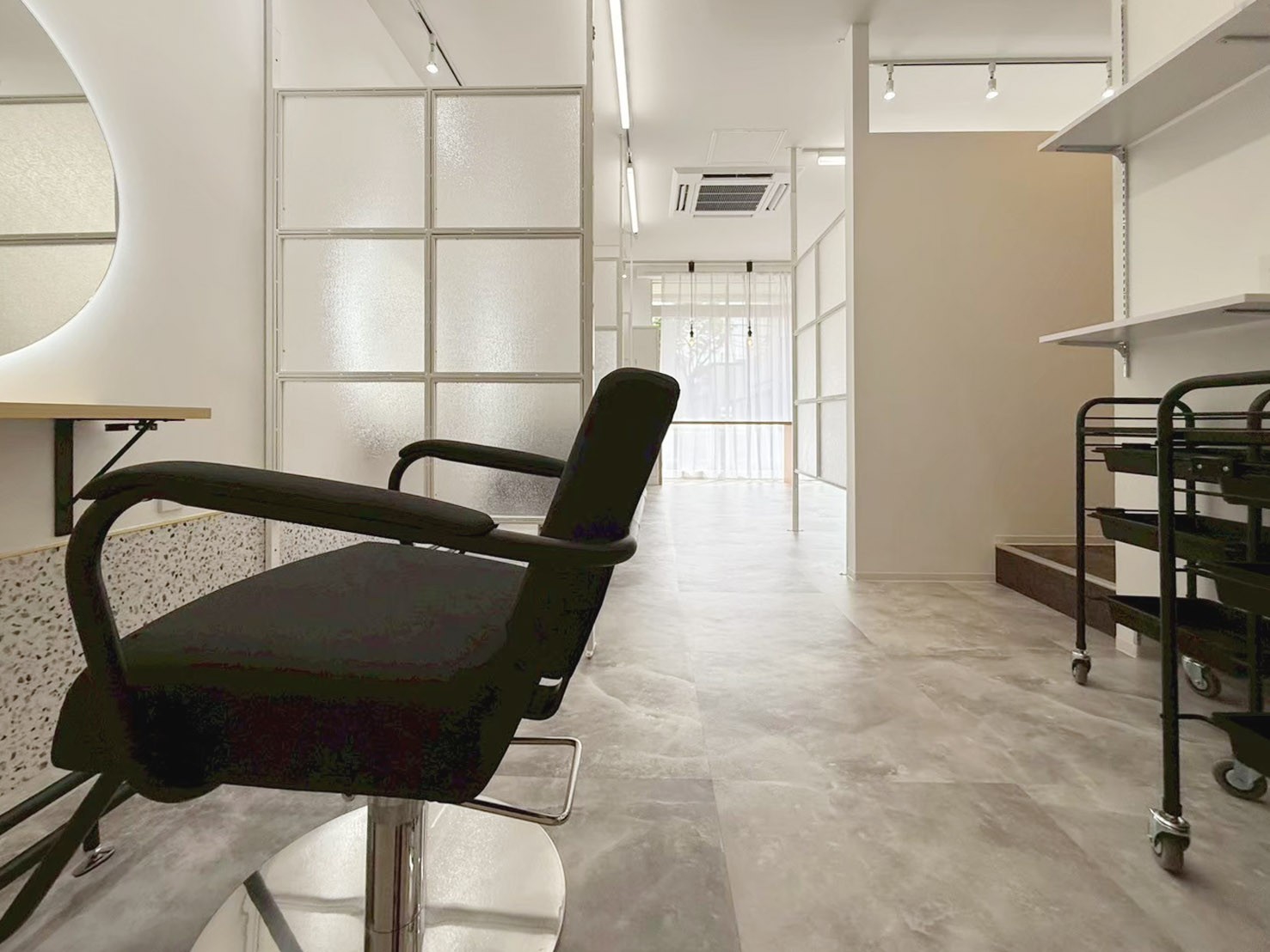 コンパクトにまとまった無機質で洗練された空間の中にも、お客様のことを思いやる心遣いや気配りが優しく灯る、素敵なサロンに仕上がりました。