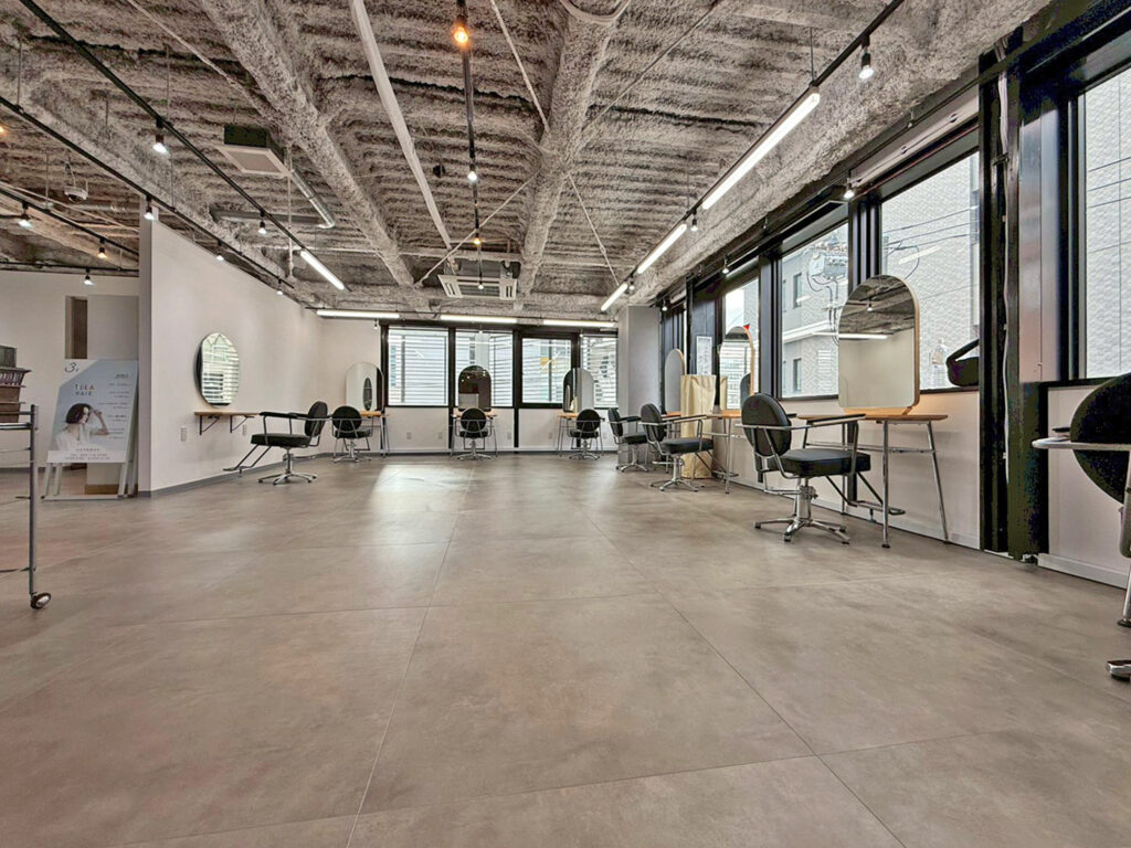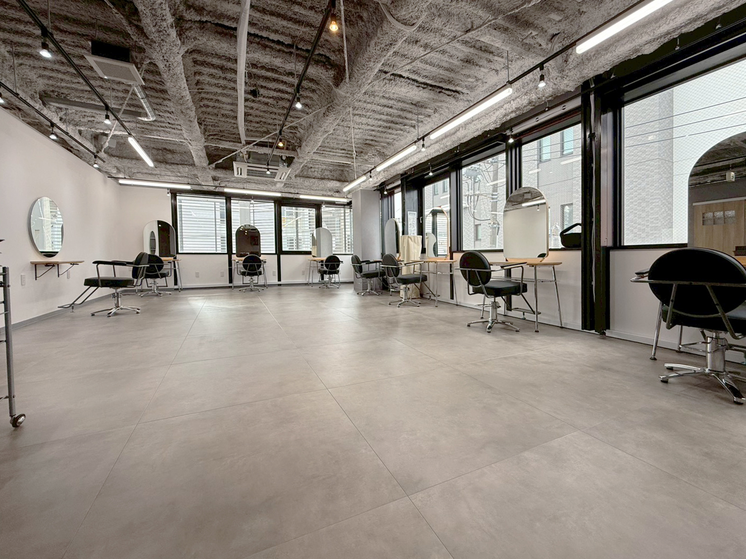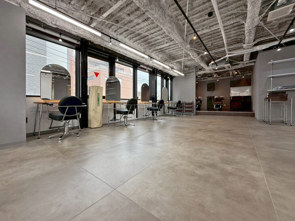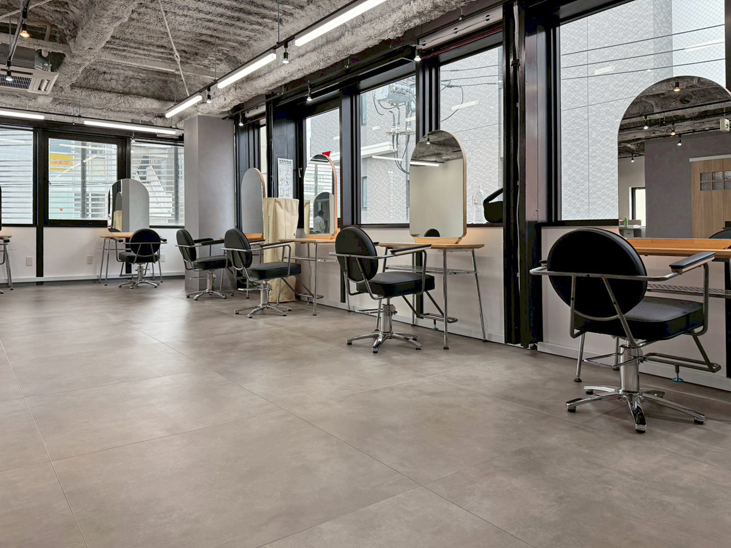 合計16席のセット面を持つ広々とした店内は、もともとオフィステナントだったという現況を活かし、残っていた間仕切りなどをそのままにレイアウト。